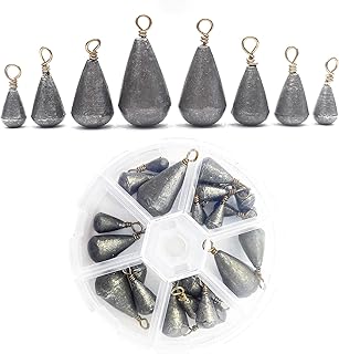 DINGBLUE 33 Pcs Fishing Weights, Mixed 9 Sizes Deep Sea Fishing Weights 2g 3g 4g 5g 7g 10g 15g 20g 30g Iron Fishing Sinkers Tackle Kit with Swivel for River Saltwater Freshwater |